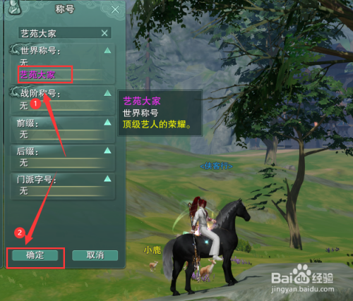 选中搜刮出来的【艺苑大师】称号,点击下方的【确定】按钮。