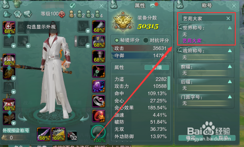这样子,我们的宿世界称号就装备当作功啦,然后我们就可以兴奋的查看该称号的结果啦。