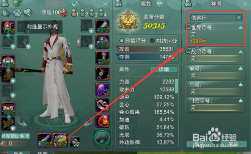 在打开的称号界面,输入【侠客行】进行搜刮。