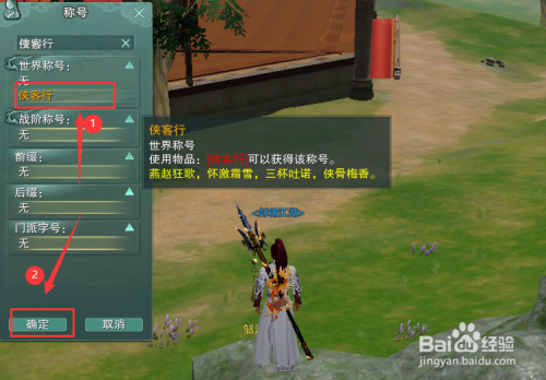 选中搜刮出来的【侠客行】称号,点击下方的【确定】按钮。