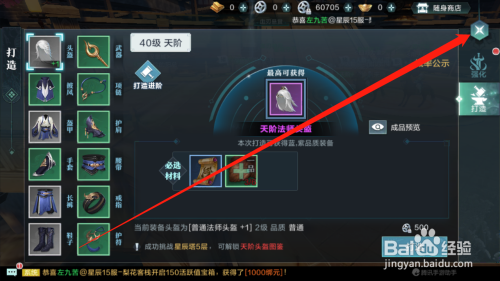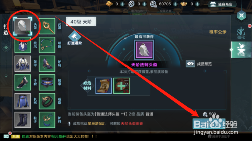 选择装备,点击打造按钮,获取新装备