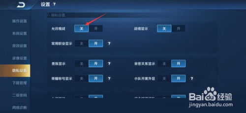 5、点击关即可不让别人不雅战。