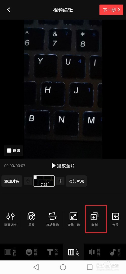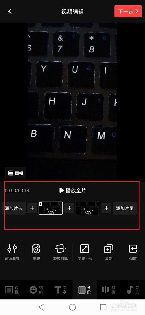 第三步选择视频之后,进去分段界面之后,标的目的右滑动