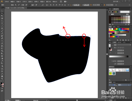 点击【外形东西】,按图示选中图案上的一个锚点并对锚点进行调节。经由过程对锚点的调节,达到对图案外形的塑造;