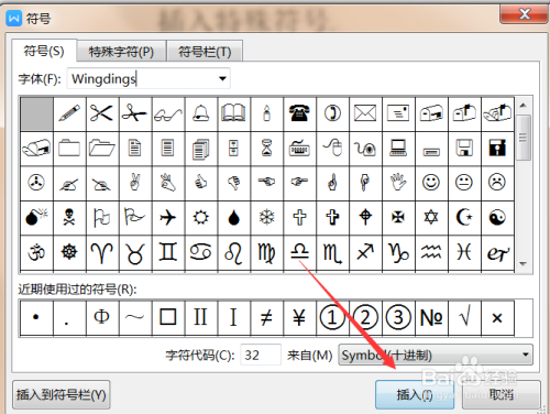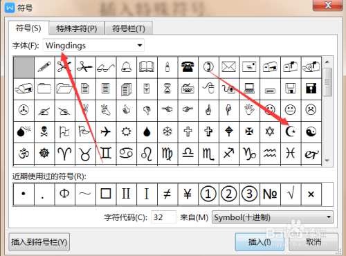 弹出符号对话框--在字体栏选择图示字体,鄙人面的符号列表中找到要插入的符号