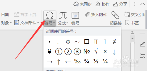 在插入选项卡下单击符号选项