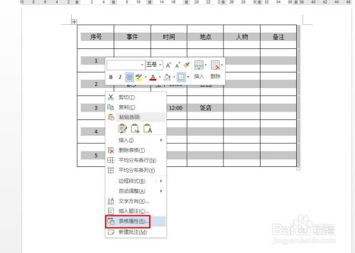 第二步:选中word中的表格,单击鼠标右键,选择“表格属性”,我们这里需要将表格调大一些,便利展示图片。