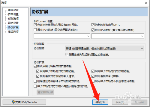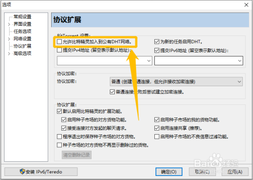 在“和谈扩展”选项中,勾选“许可比特精灵插手到公有DHT收集”选项的勾选开关。