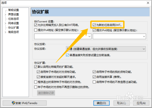 许可比特精灵插手到公有DHT收集后,勾选“为新的使命启用DHT”选项的勾选开关。