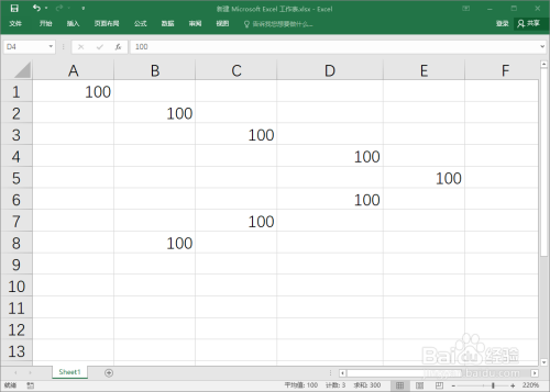 可以发现,所有选择的单位格将被填充不异的数据“100”。