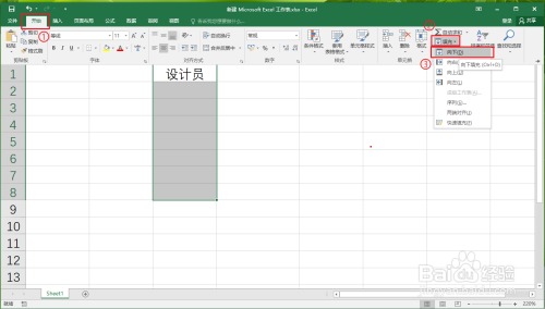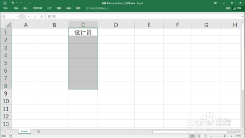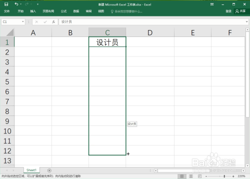 ●选中第一个单位格,例如“C1”,输入数据“设计员”;