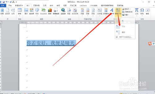 点击插入字样后,找到首字下沉。