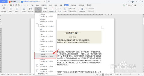 点击此中的纸张大小的选项。