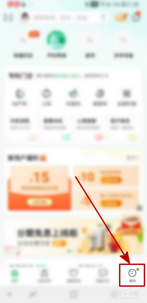 进入安然好大夫的首页之后,点击页面右下角的“我的”。