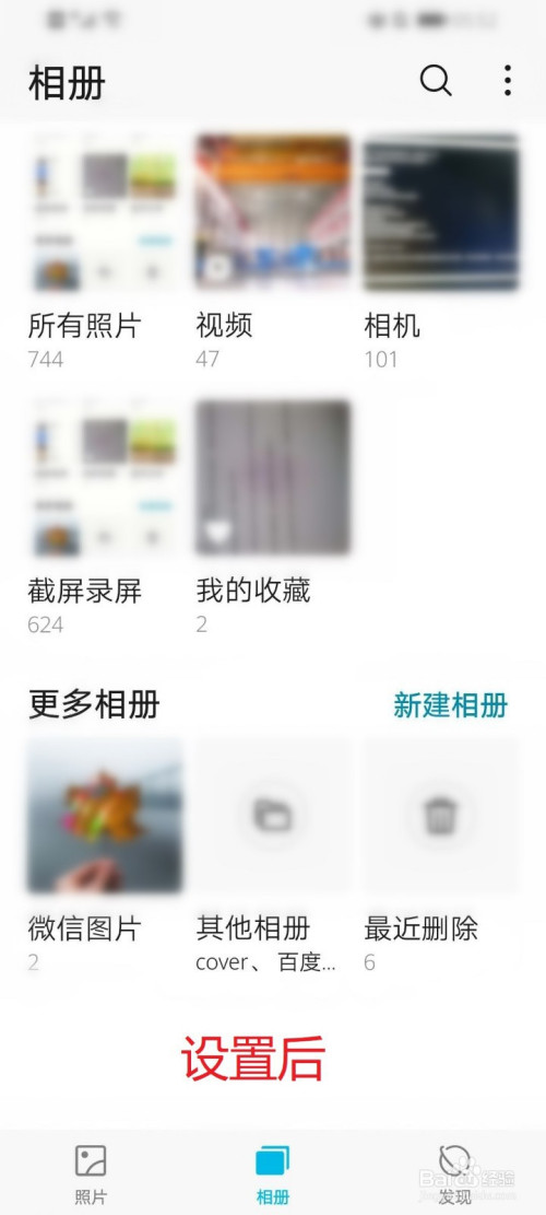 注重:开关显示“灰色”,暗示埋没相册功能封闭;开关显示“蓝色”,暗示埋没相册功能开启。