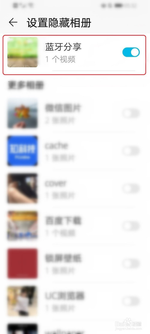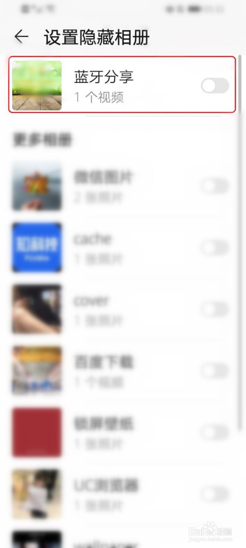 ●选择需要埋没的相册,例如“蓝牙分享”;
