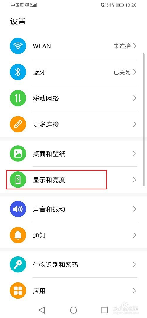 第一步打开华为手机,点击设置,然后点击显示和亮度