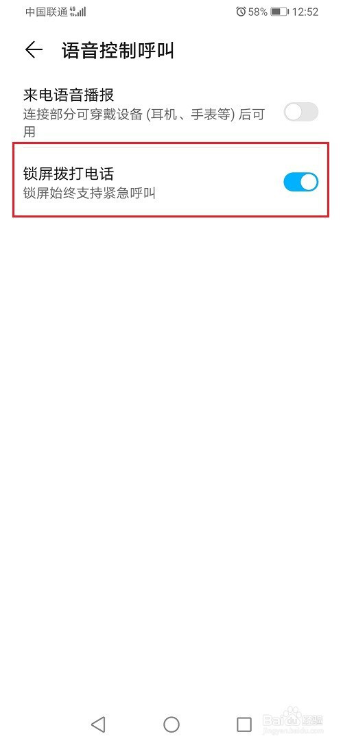 第五步进去语音节制呼叫界面之后,可以设置锁屏告急呼叫,按照需要设置