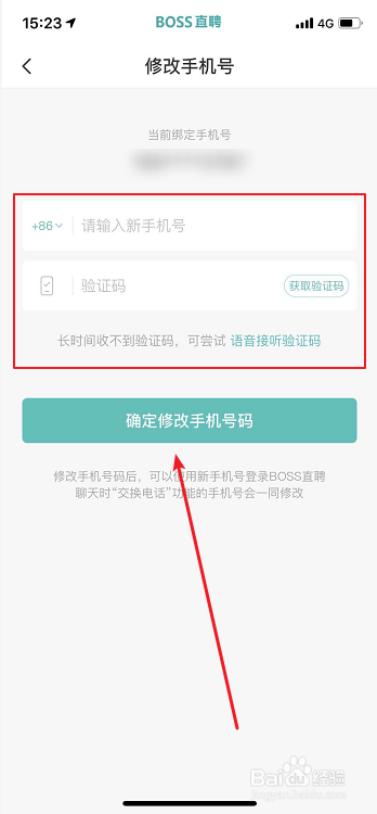 输入新的手机号码后,点击【确定点窜手机号码】