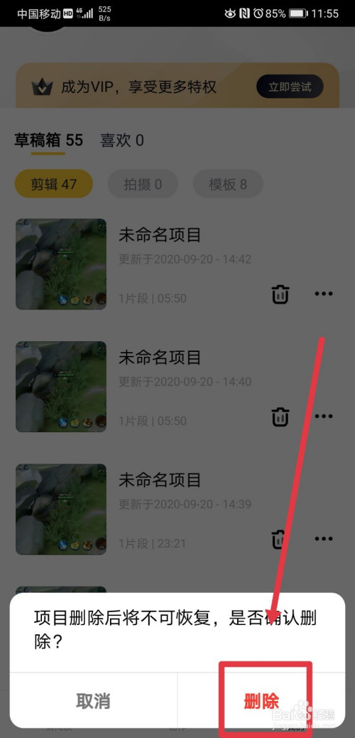 点击删除按钮后,会弹出提醒,项目删除后不成恢复,是否确认删除,我们点击删除按钮,完当作删除即可。