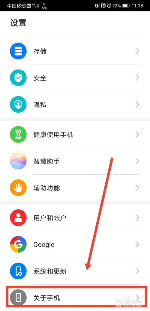 第二步在设置页面,点击进入关于手机页面;