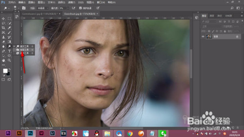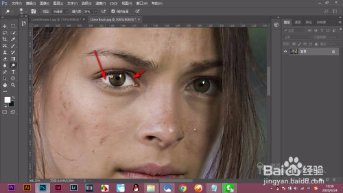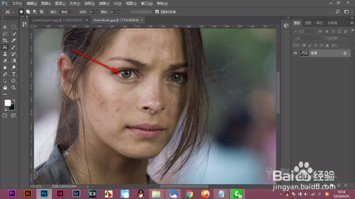 1.打开PS,导入人物图片,可以看到人物的眼睛有些偏淡。