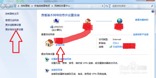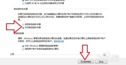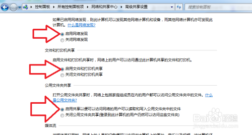 打开收集与共享中间----将收集设置为家庭或工作---点击更改高级共享设置----选中”启用收集发现“、”启用文件和打印机共享“、“启用共享以便可以拜候”三项,封闭“密码庇护共享”,点击“保留点窜”。