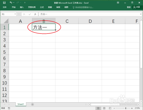● 在“B1” 单位格中输入“方式一”,并选中该单位格;