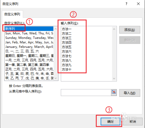 ●在“输入序列”列表框中输入需要界说的新序列,如下图所示;