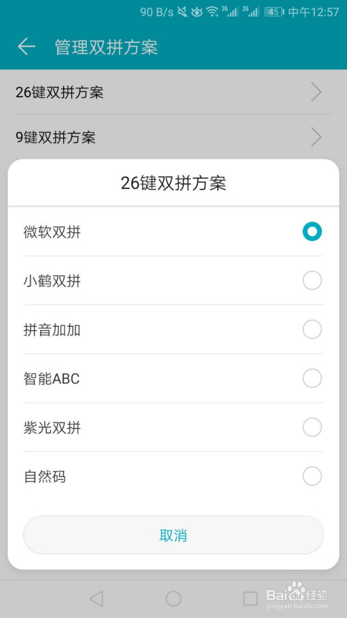 点击“办理双拼方案”。选择喜好的键盘结构:26键或9键。选择“微软双拼”。点击确定即可。