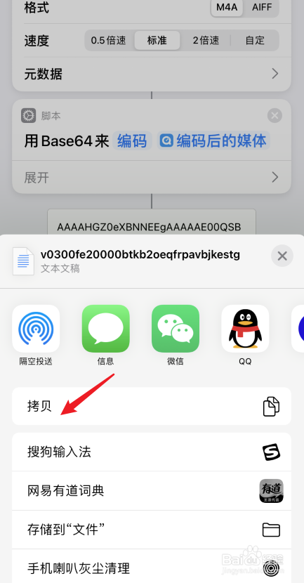 点击后,选择拷贝的选项。之后,退出快捷指令的建立。