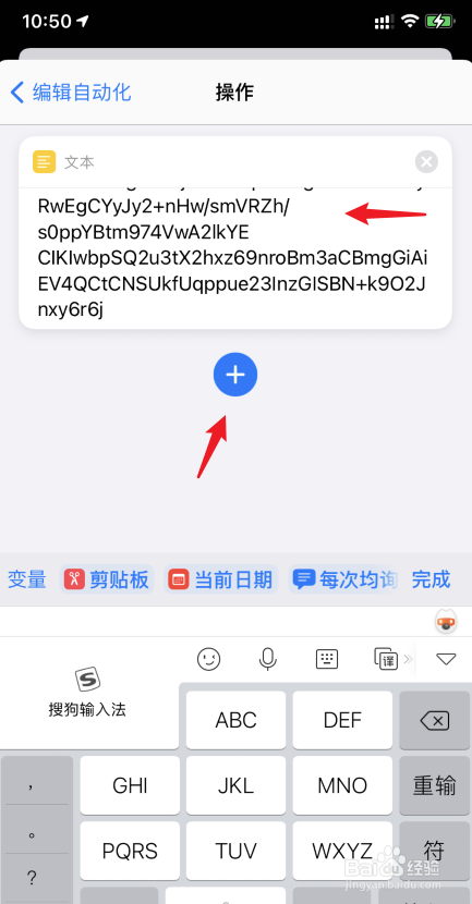 之后,将之前拷贝的文本,粘贴在输入框内。然后,选择下方的加号。