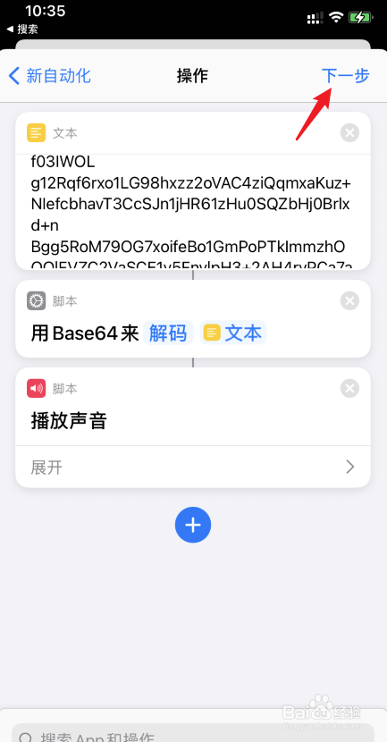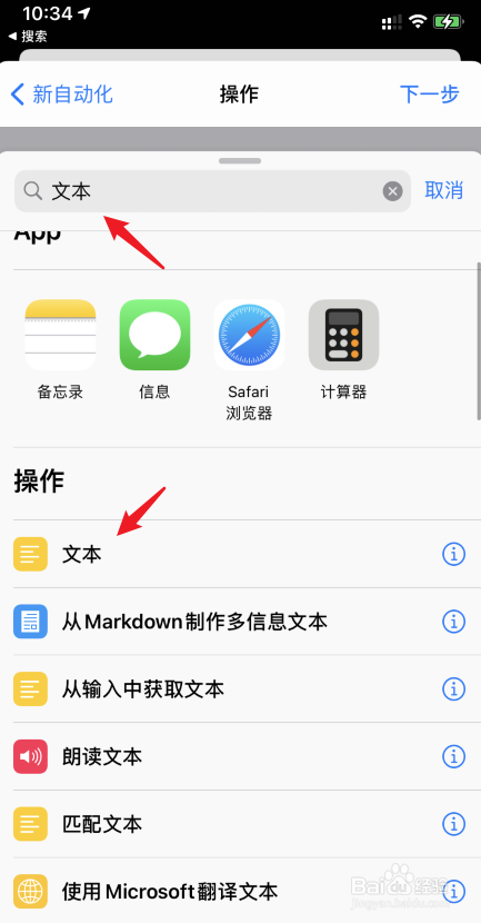 点击后,选择添加操作,输入文本,点击下方的文本选项。