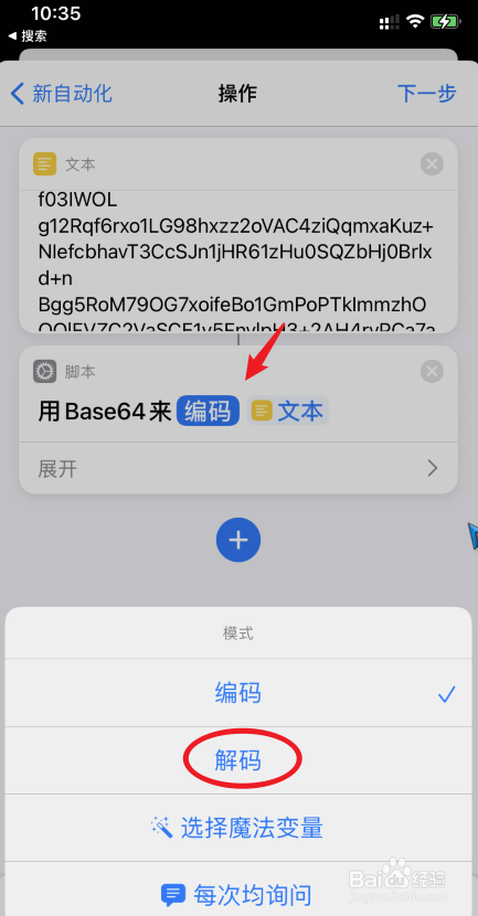 点击后,选择编码,将模式更改为解码。之后,点击下方的加号。