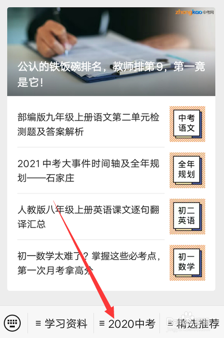 在公家号里点击2020中考。