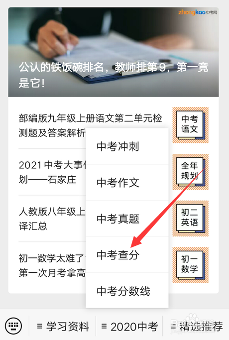 搜刮中考网微信公家号,点击打开。