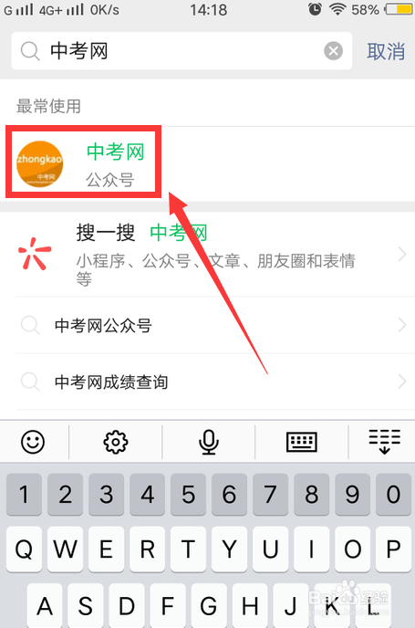 1、打开微信搜刮中考网公家号。