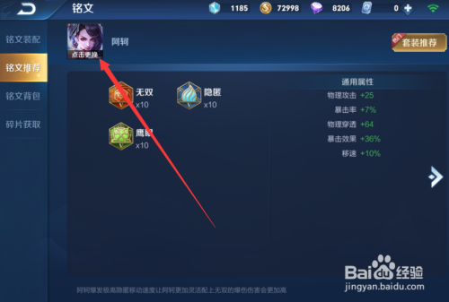 进入后在英雄头像里点击改换。