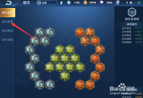 然后在左侧一栏里点击铭文保举。