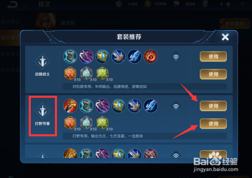 找到打野节拍的出装,点击右侧的利用即可。