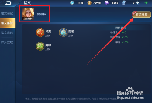 选择夏洛特后,点击右侧的套装保举。