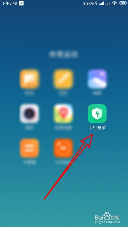 在手机屏幕上摆布的滑动,点击手机管家的图标。