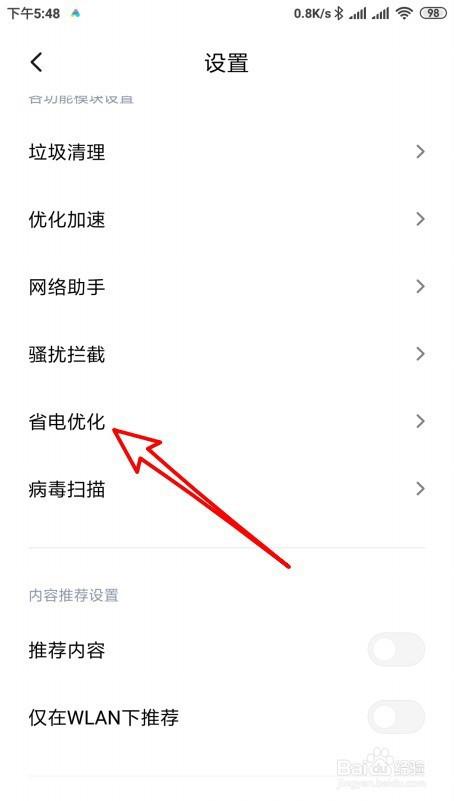 接下来在打开的设置页面中点击省电优化的菜单。