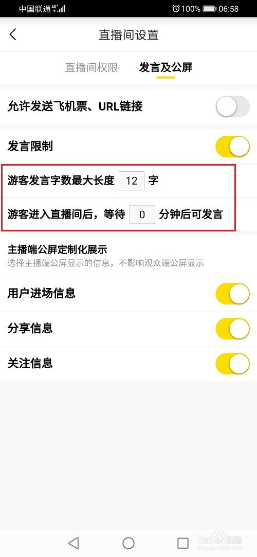 第四步进去讲话及公屏之后,可以设置旅客讲话字数和期待几分钟可以讲话