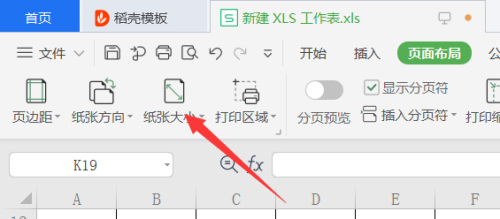找到纸张大小按钮