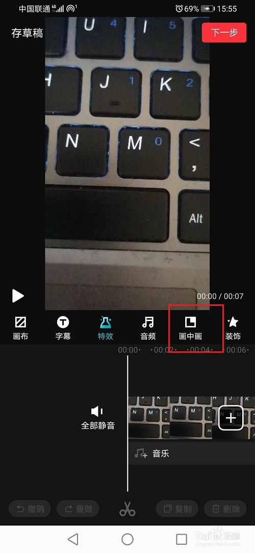 第三步导入视频之后,点击画中画