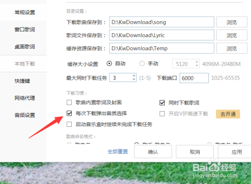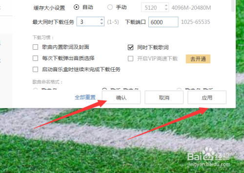 点击一下应用,然后再次点击一下确定,就可以保留我们的设置了,今后就打消了下载时辰的音质选择了。