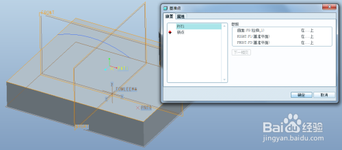 选择实体平板上概况,ctrl键+鼠标左键多选两个基准平面,三个面订交获得一个基准点。