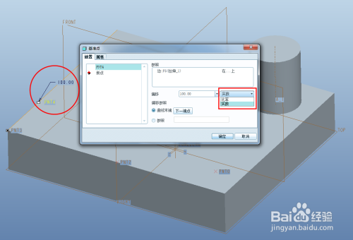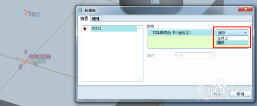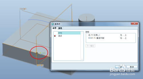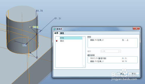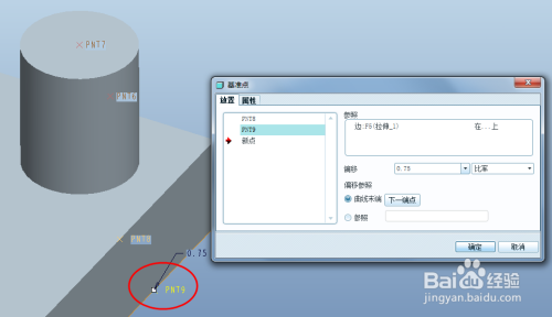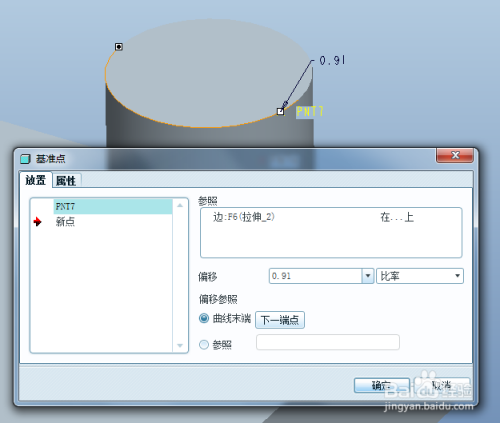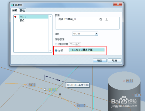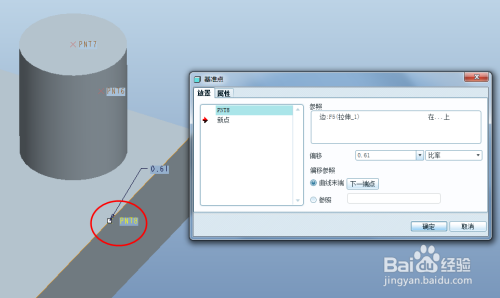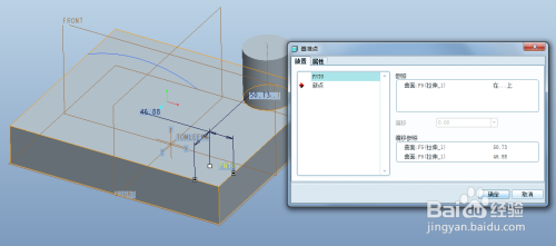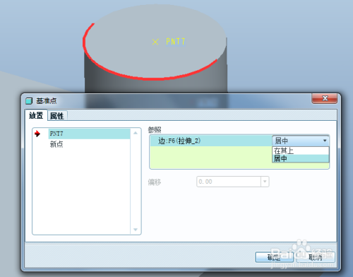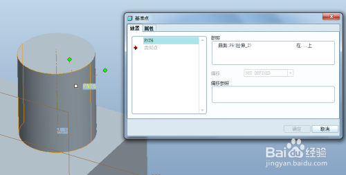 点在线上可以在对话框中利用参照来选择平面或者基准平面来尺寸定位点。