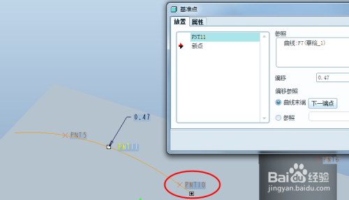 可以继续再选择曲线,这样就建立了第三个点,比率放置的体例建立基准点在曲线上。